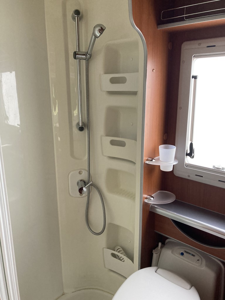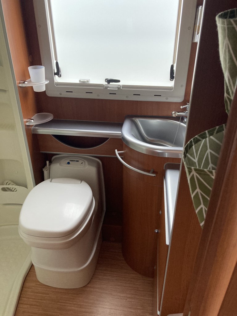 - WC – splachovací chemická toaleta Thetford s odvětráním
